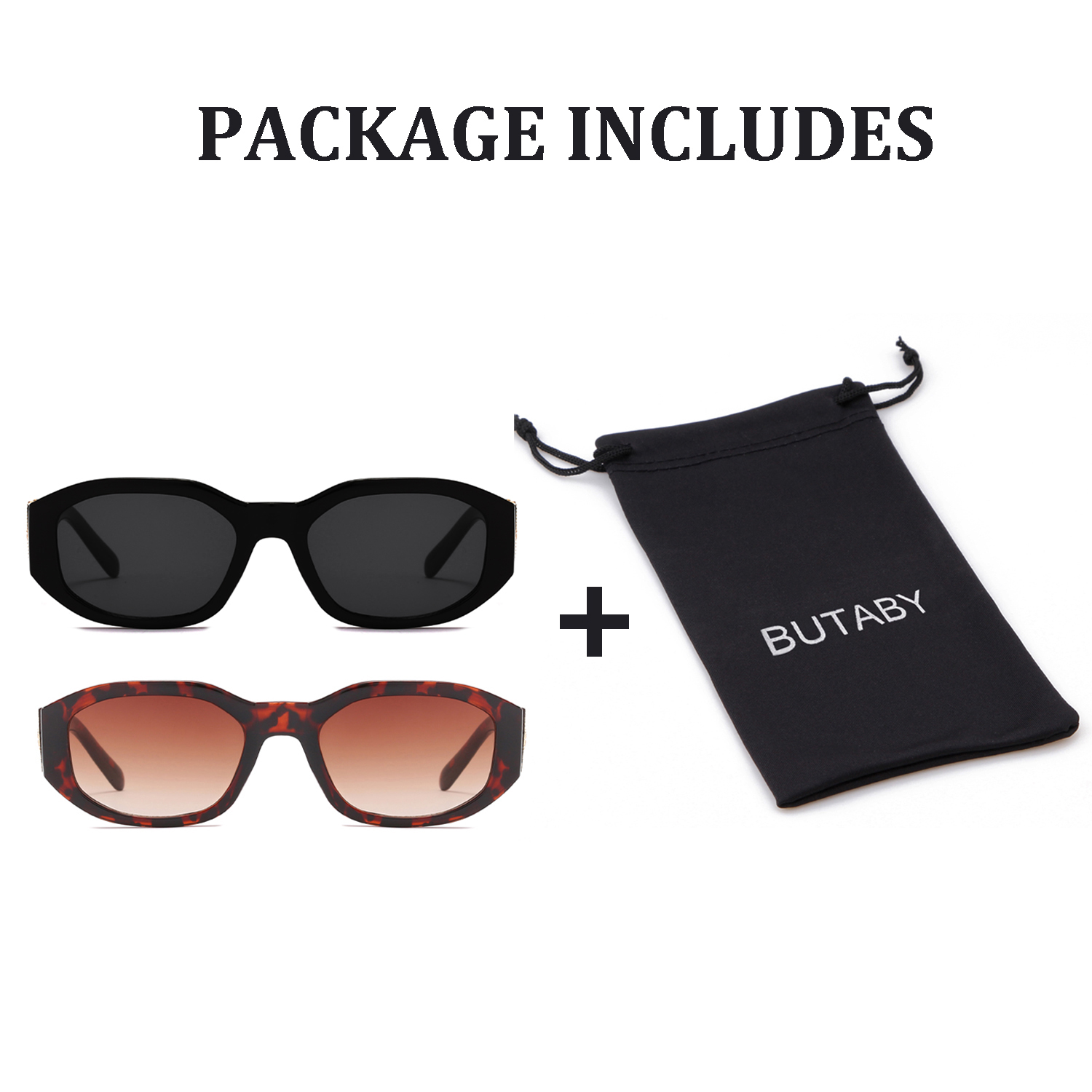 Home >  Product >BUTABY Rectangle Sunglasses for Women Retro Driving Glasses 90s Vintage Fashion Irregular Frame UV400 Protection Black & Leopard