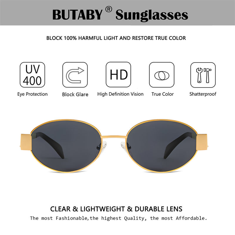 [HIGH QUALITY] - The trendy oval sunglasses use a lightweight metal frame, silicone nose pads, and high-definition lenses to ensure long-term wear without pressure on the nose, giving you a comfortable wearing experience.
