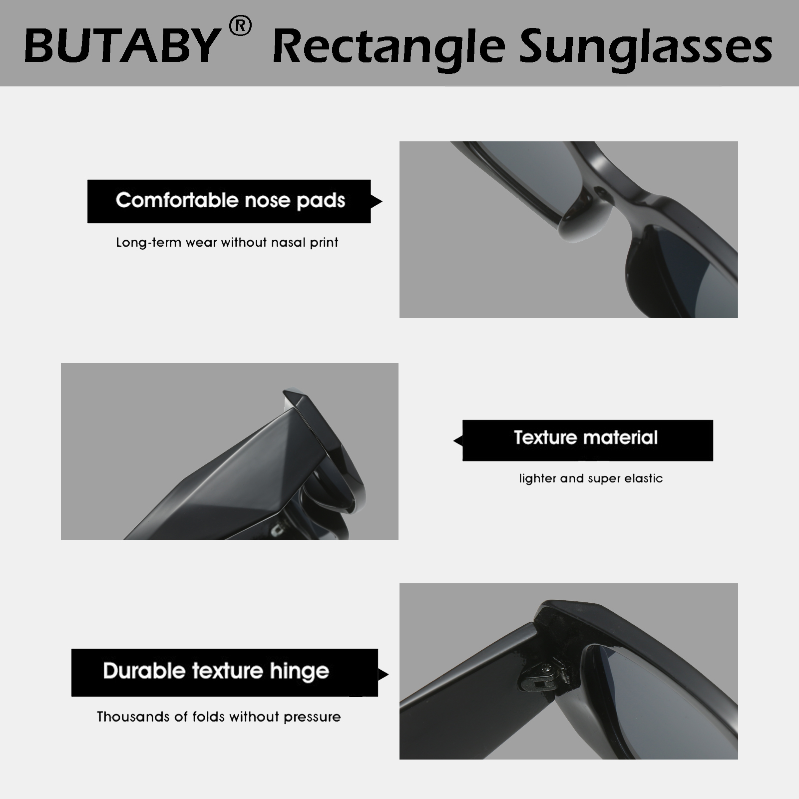 Home >  Product >BUTABY Trendy Rectangle Sunglasses for Women Men Retro Sun Glasses Vintage Fashion Square Frame Black