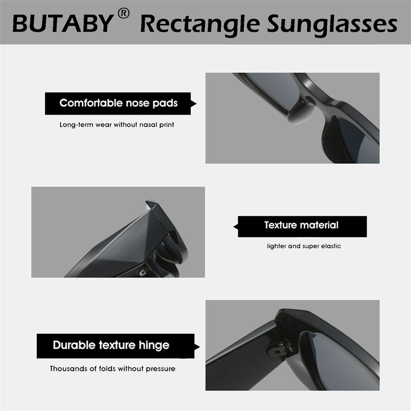 • Write A Review About "BUTABY Trendy Rectangle Sunglasses for Women Men Retro Sun Glasses Vintage Fashion Square Frame'